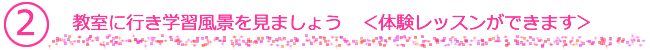 教室にその旨をご連絡いただき、説明や体験レッスン・授業見学などをお受けください。