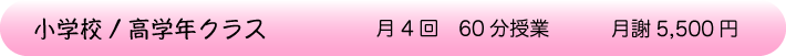 | 9歳~12歳 | 18:30~19:30 | 18:30~19:30 | 18:30~19:30 | 18:30~19:30 | 14:00~15:00 | ||